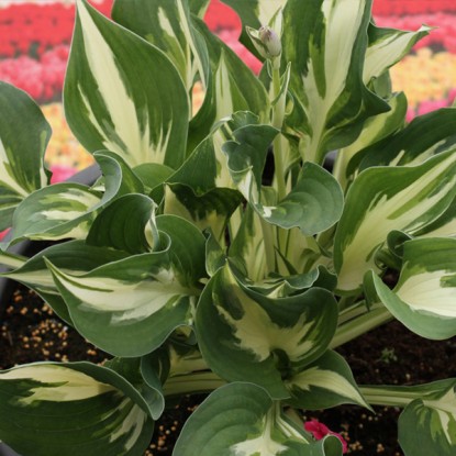 Хоста "Кристмас Айленд-NB" – это великолепное многолетнее растение, которое станет настоящим украшением вашего сада. Этот сорт хосты отличается крупными, сердцевидными листьями с ярко-зелёной окраской и широкой кремово-белой каймой. Листья создают эффектный контраст, привлекая внимание и добавляя изысканности любому ландшафтному дизайну.